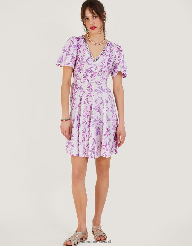 فستان قصير بطبعة صدفة ملابس لون القرنفل Monsoon نحيف N4BV8X55 - Monsoon online customer service