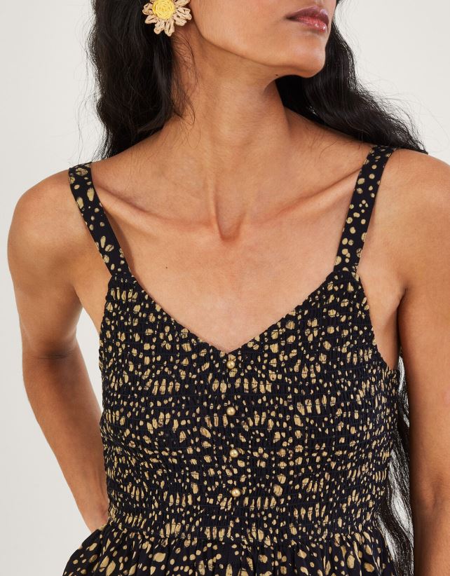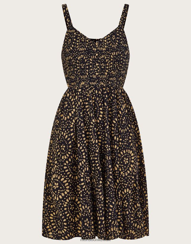 Monsoon محل - فستان الشمس بطول الركبة بطباعة الباتيك في لينزينغ إيكوفيرو ملابس أسود Monsoon نحيف N4BV8X650