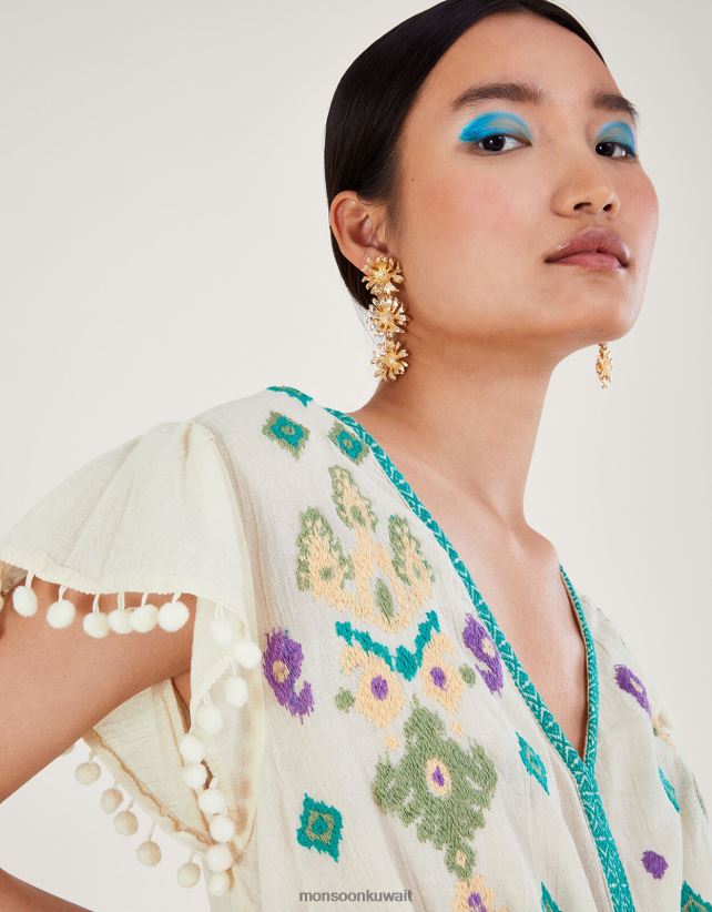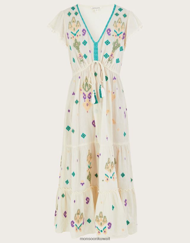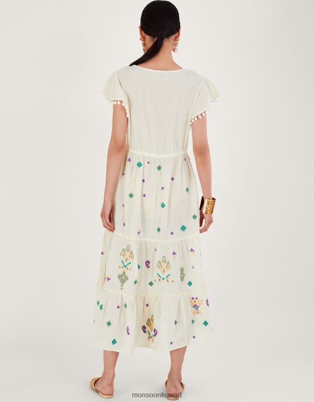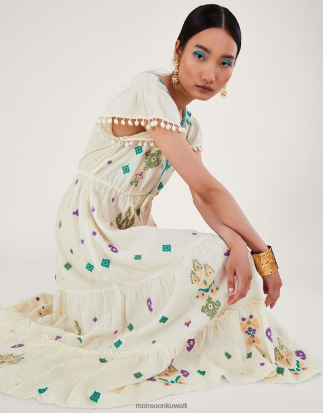 Monsoon معنى - فستان ماكسي مطرز بأكمام رفرفة ملابس أبيض Monsoon نحيف N4BV8X429