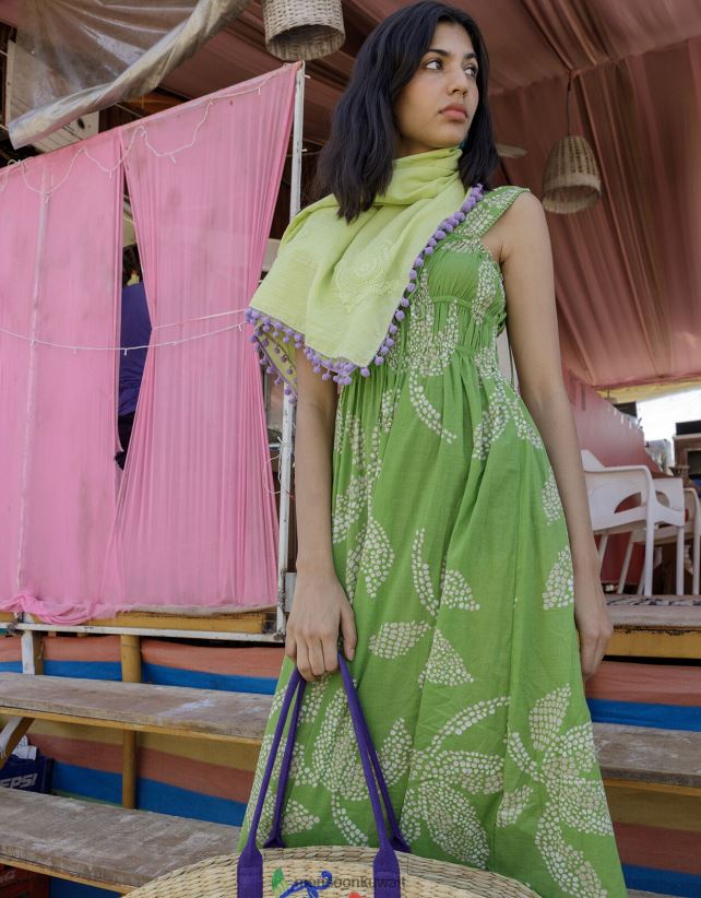 مثالي لاحتساء كأس من المشروبات الغازية في الحديقة مع الأصدقاء، هذا الفستان مصمم بأشرطة برباط في جميع أنحاء الجسم، مما يخلق لمسة نهائية مريحة وبوهيمية. تتميز أحزمة الكتف الواسعة بزخارف مطرزة، وتنتهي بتنورة متوسطة الطول وطبعة كف منقطة. كجزء من رحلتنا لجعل ملابسنا أكثر لطفًا مع العالم من حولنا، تم تصنيع هذا المنتج باستخدام مواد خام أكثر استدامة، مثل القطن العضوي والبوليستر المعاد تدويره والفيسكوز من الغابات المزروعة بشكل مسؤول. أخضر