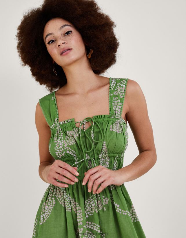 Monsoon accessorize - فستان شمسي متوسط الطول بطبعة نخيل، مصنوع من القطن المستدام ملابس أخضر Monsoon نحيف N4BV8X941