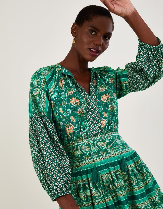 Monsoon Kuwait - فستان قصير بطبقات وطبعات زهور من لينزينغ إيكوفيرو ملابس أخضر Monsoon نحيف N4BV8X753