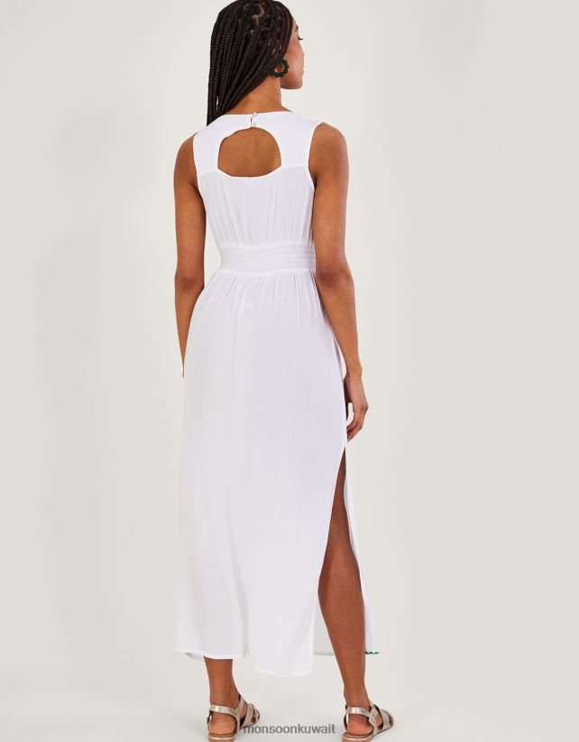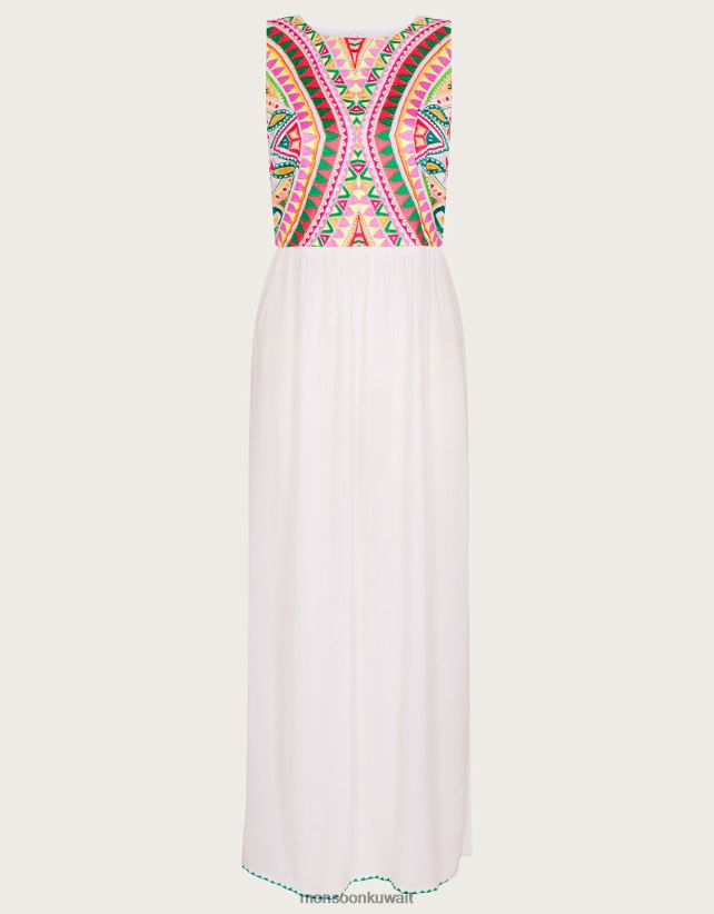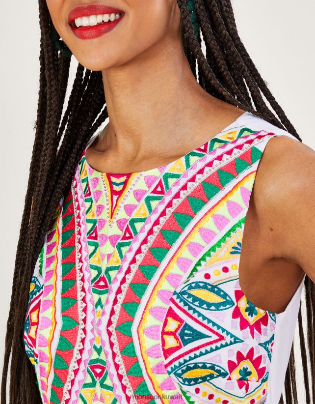 Monsoon UAE - فستان متوسط الطول مطرز بالفسيفساء من لينزينج إيكوفيرو ملابس أبيض Monsoon نحيف N4BV8X448