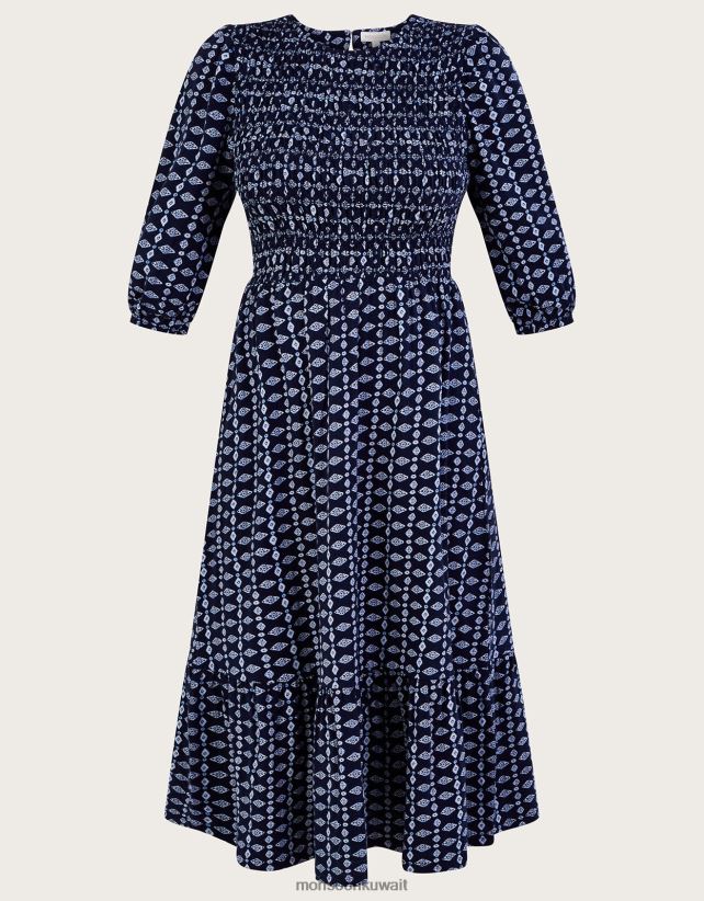 فستان جيرسيه بطبقات وطبعات هندسية ملابس الأزرق الداكن) Monsoon نحيف N4BV8X843 - Monsoon children