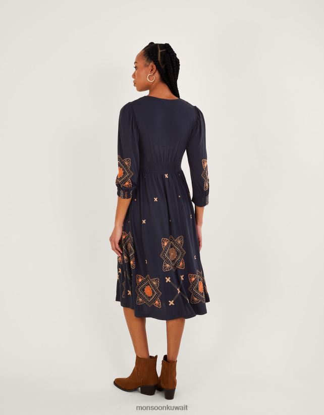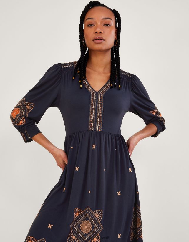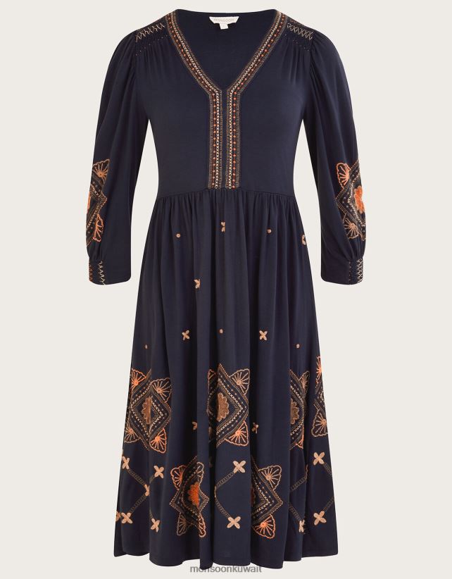 فستان جيرسيه ميدي بأكمام منتفخة ملابس الأزرق الداكن) Monsoon نحيف N4BV8X883 - Monsoon kuwait online shopping