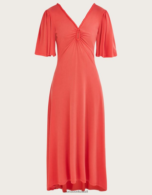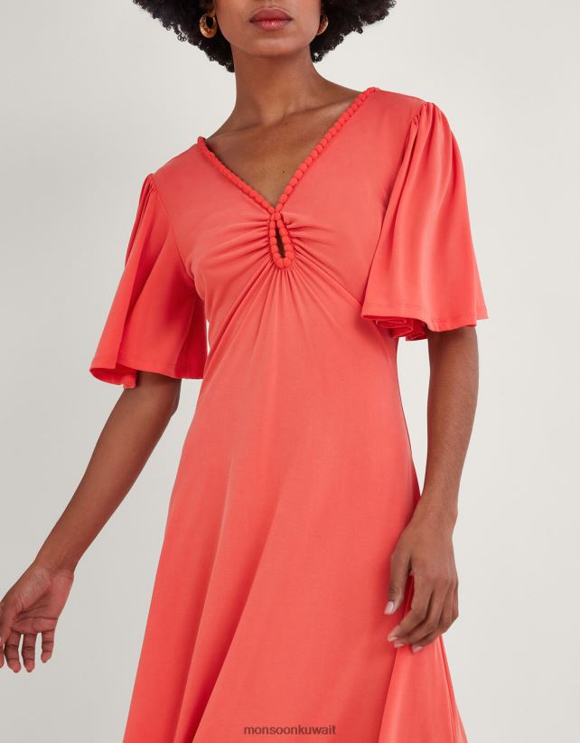 فستان من الجيرسيه مزين بزخرفة بوم بوم وفتحة مفتاح ملابس لون القرنفل Monsoon نحيف N4BV8X327 - Monsoon kuwait avenues