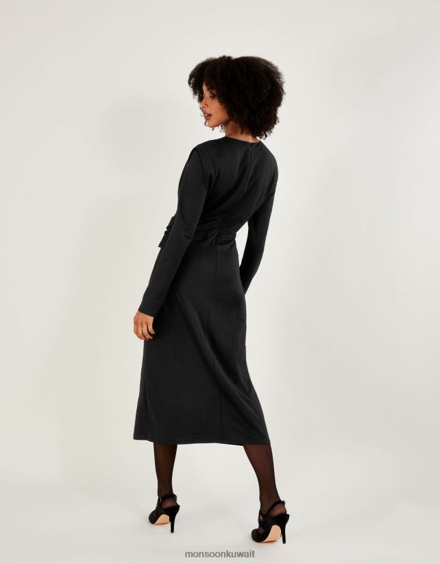 Monsoon accessorize - فستان جيرسيه بتفاصيل حلقة بحزام ملابس أسود Monsoon نحيف N4BV8X800