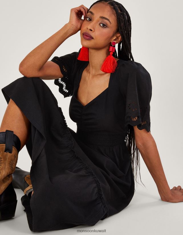 Monsoon accessorize - فستان ميدي بأطراف مطرزة ملابس أسود Monsoon نحيف N4BV8X957