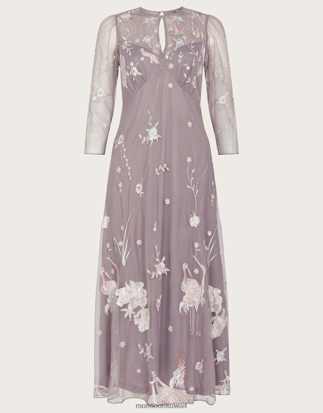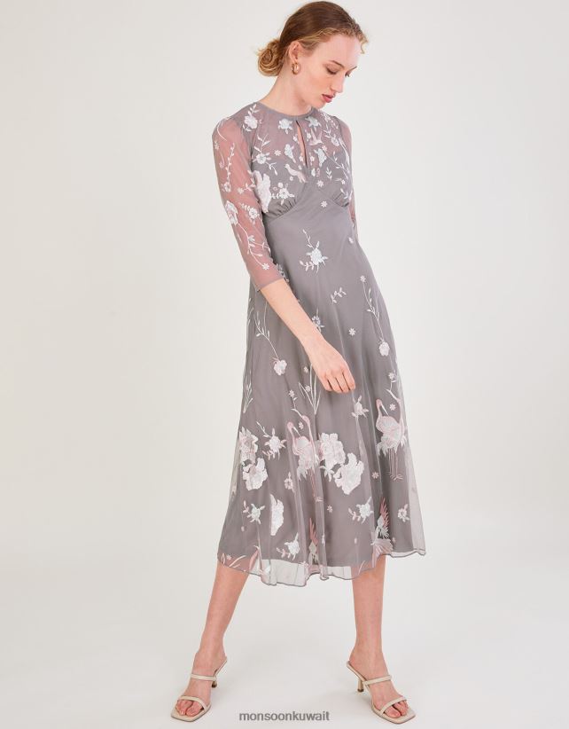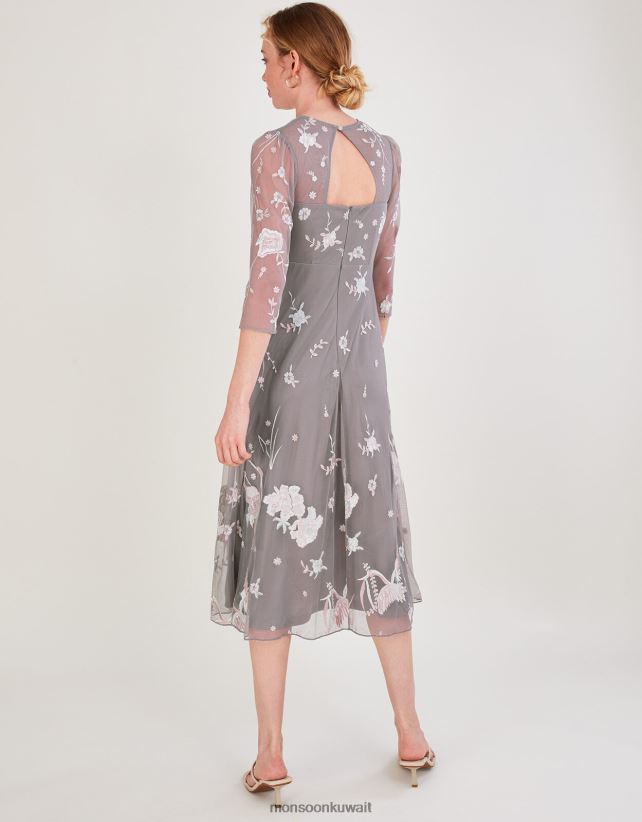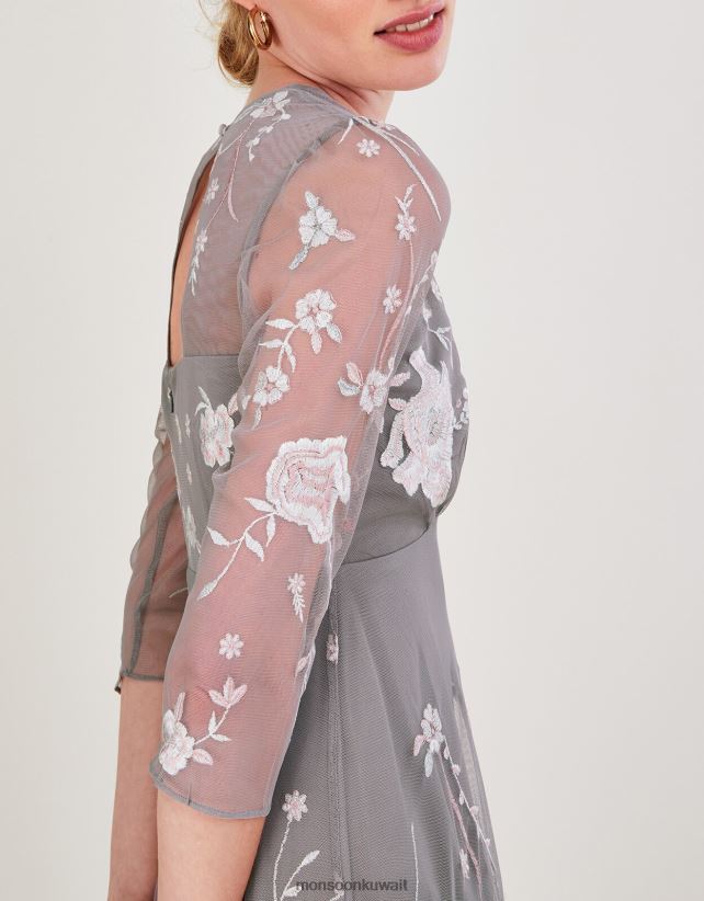 فستان بريتا متوسط الطول مزين بالبوليستر المعاد تدويره ملابس رمادي Monsoon نحيف N4BV8X1044 - Monsoon kuwait avenues