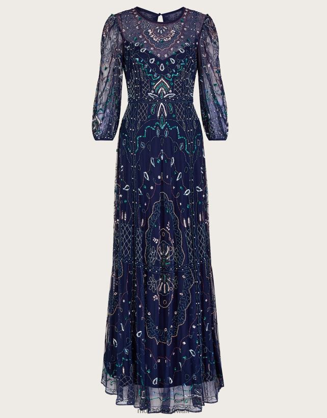 فستان طويل مزين بزهرة الزنبق من البوليستر المعاد تدويره ملابس الأزرق الداكن) Monsoon نحيف N4BV8X598 - Monsoon children