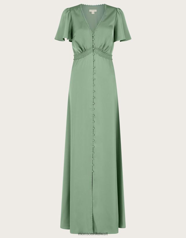 فستان ماكسي من الساتان اللبلاب ملابس أخضر Monsoon نحيف N4BV8X996 - Monsoon children