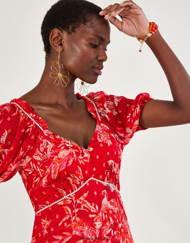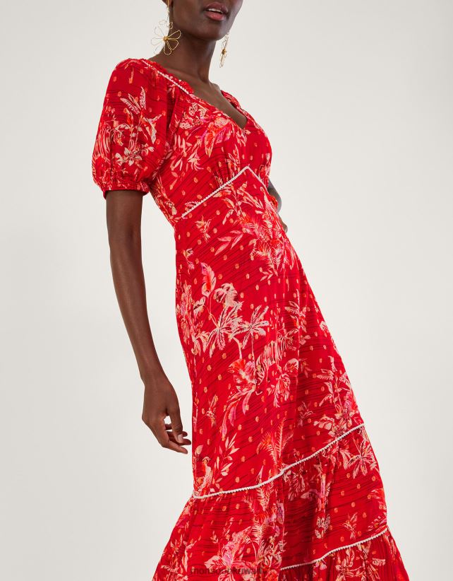 Monsoon محل - فستان آرييل بطبعات طبقات مع الفيسكوز المستدام ملابس أحمر Monsoon نحيف N4BV8X938