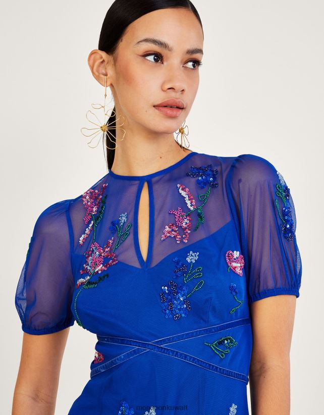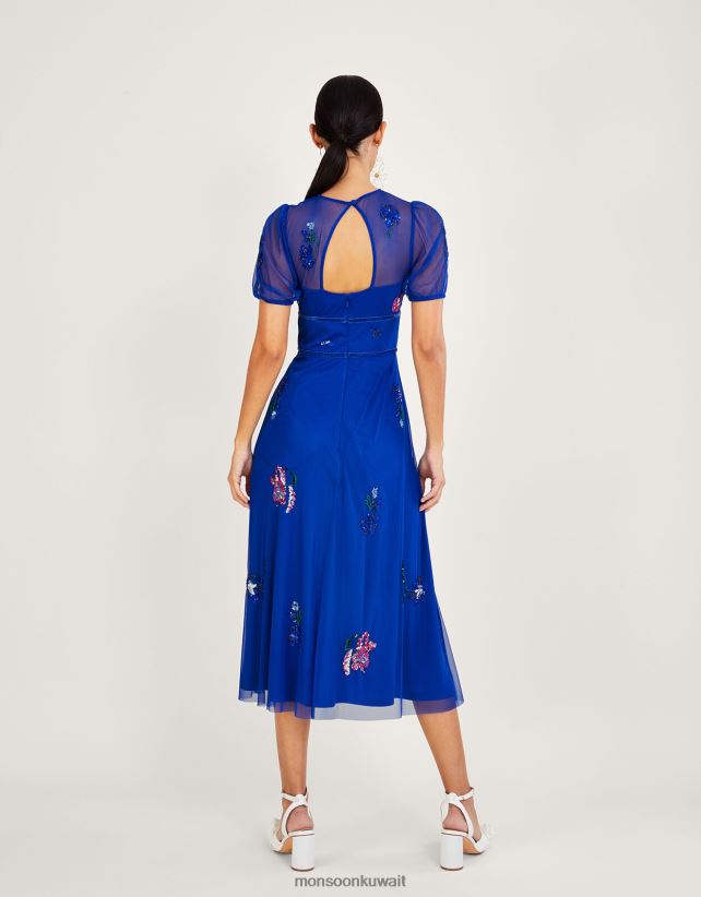 Monsoon محل - فستان فوبي متوسط الطول مزين من البوليستر المعاد تدويره ملابس الأزرق (الكوبالت) Monsoon نحيف N4BV8X1030