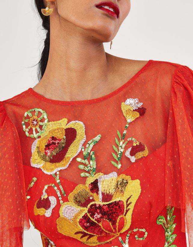 Monsoon محل - فستان كلوديا ميدي مزين ملابس أحمر Monsoon نحيف N4BV8X764