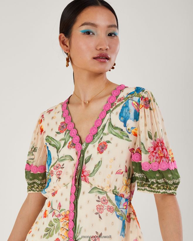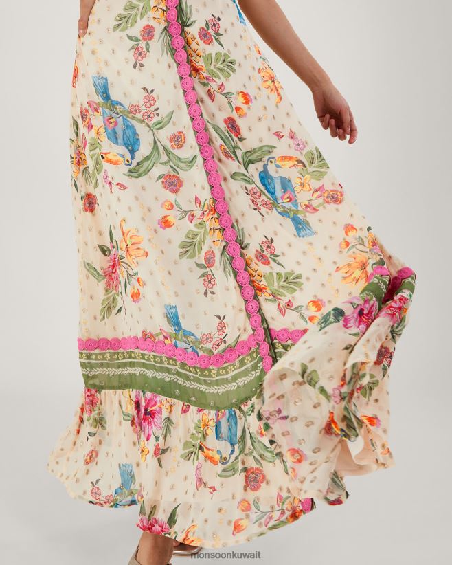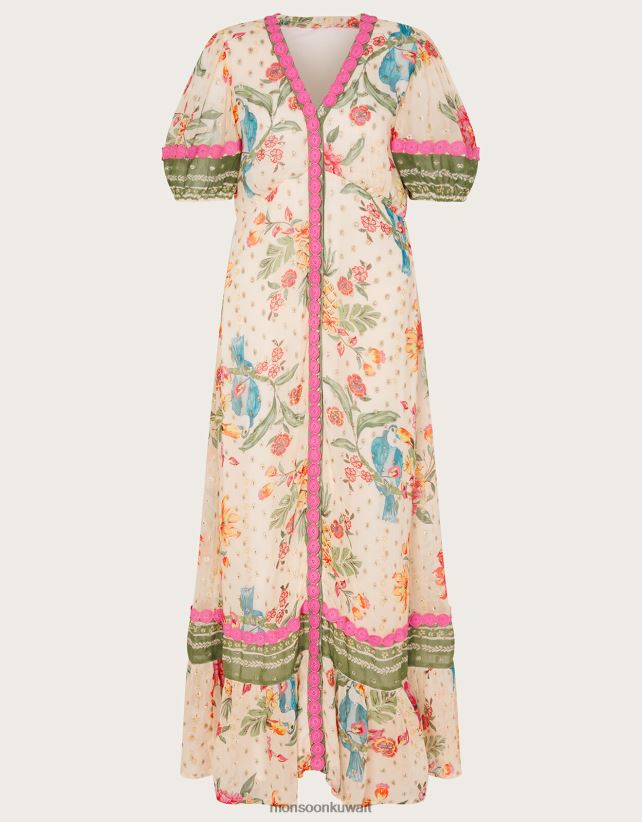 Monsoon محل - فستان ماكسي بطبعة زهور ميتاليك من uma ملابس عاج Monsoon نحيف N4BV8X823