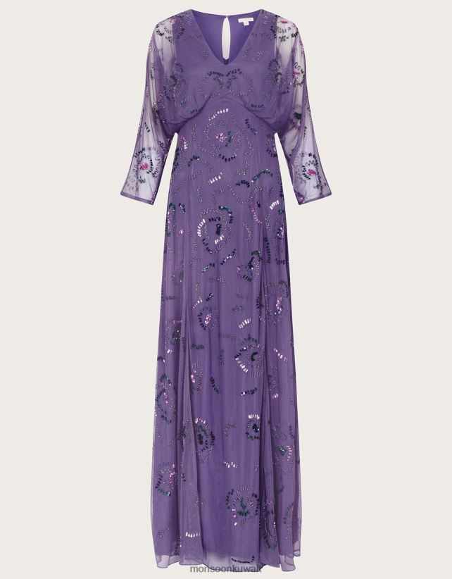 Monsoon معنى - فستان بيجي طويل مزين بالبوليستر المعاد تدويره ملابس أرجواني Monsoon نحيف N4BV8X1002