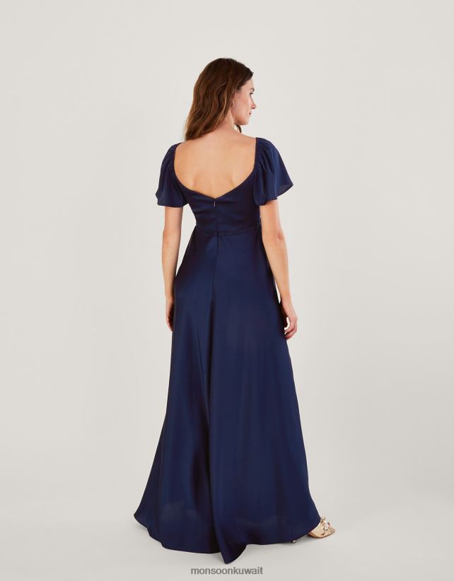 Monsoon معنى - فستان سافانا الساتان ماكسي ملابس الأزرق الداكن) Monsoon نحيف N4BV8X376
