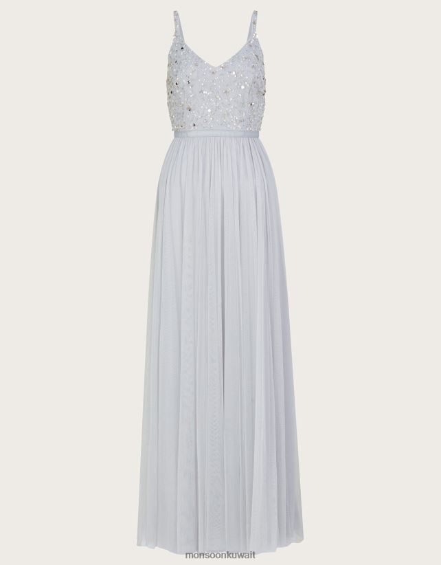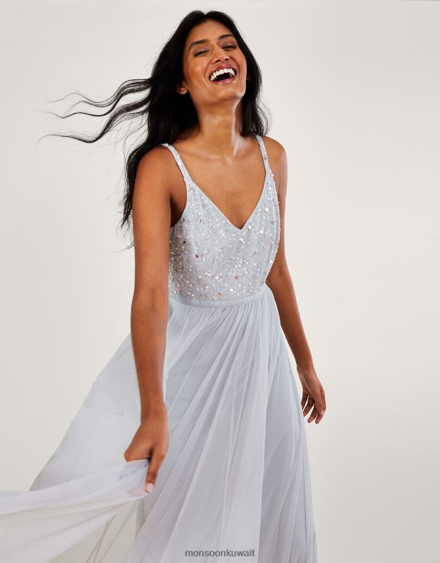 Monsoon accessorize - فستان خريفي طويل مزين بالبوليستر المُعاد تدويره ملابس فضة Monsoon نحيف N4BV8X383
