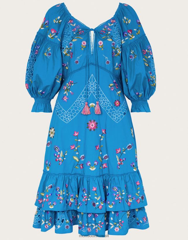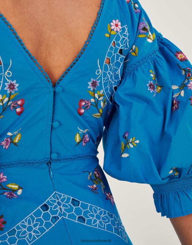 Monsoon Kuwait - فستان مطرز بطول الركبة ملابس أزرق Monsoon نحيف N4BV8X965