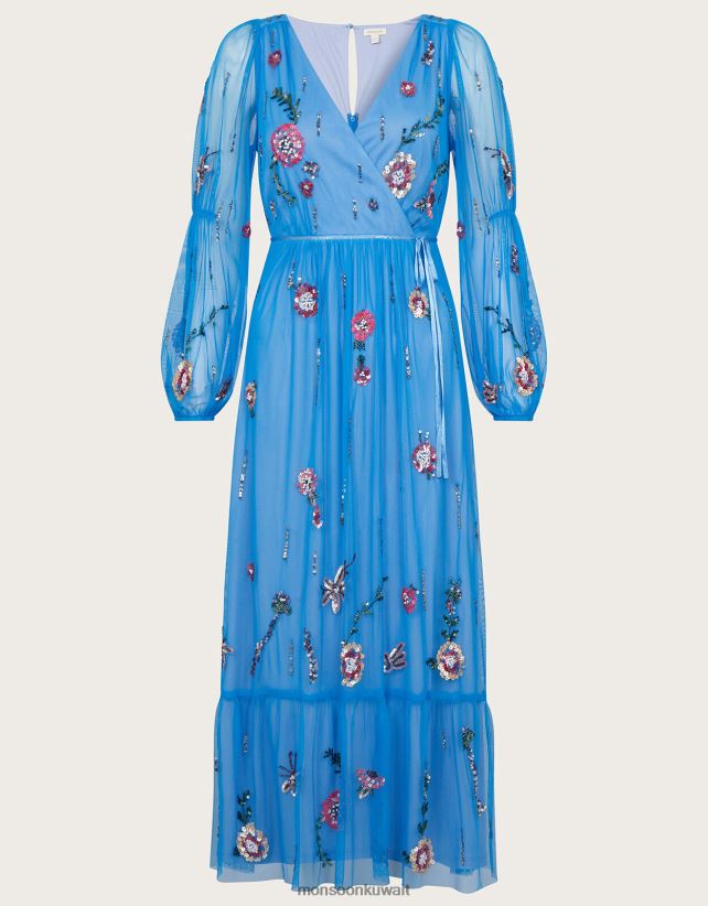 Monsoon Kuwait - فستان ملفوف مزين من هاتي ملابس أزرق Monsoon نحيف N4BV8X1056