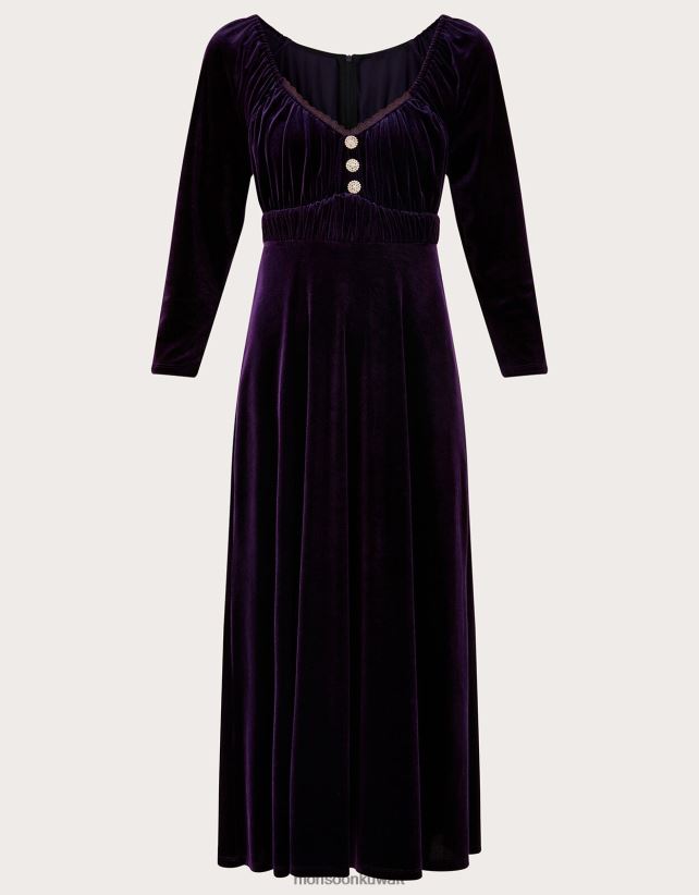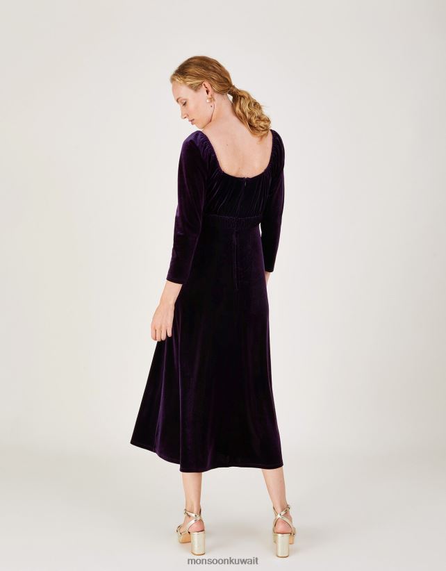 Monsoon UAE - فستان سارة المخملي ميدي ملابس أرجواني Monsoon نحيف N4BV8X647