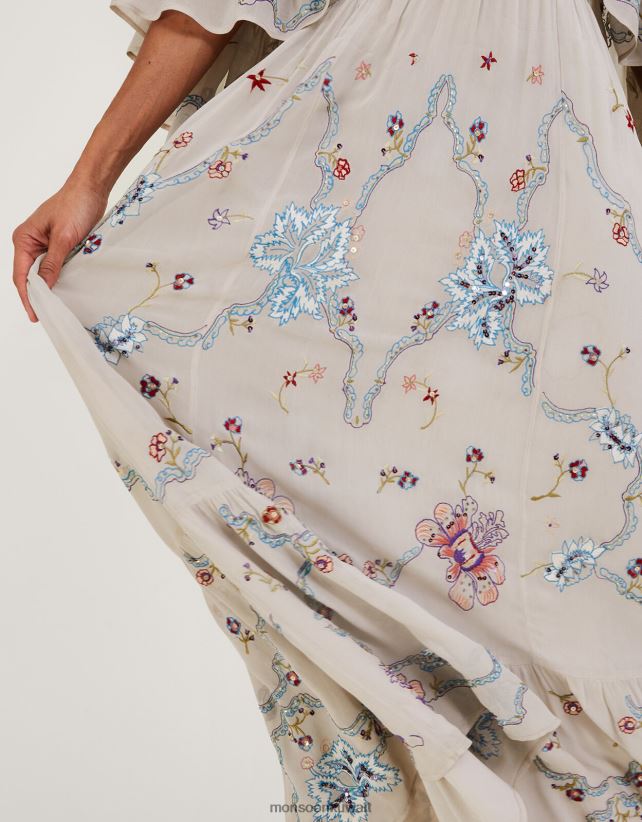 Monsoon UAE - فستان سيرافينا طويل بكاب مطرز ملابس ناقص Monsoon نحيف N4BV8X522