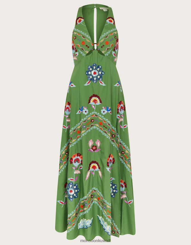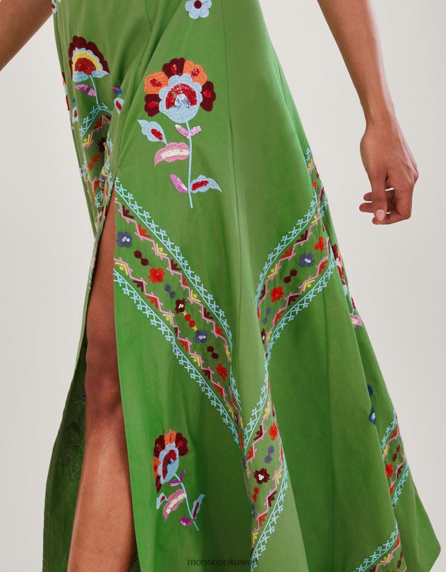 Monsoon UAE - فستان شيرلي طويل مزين بتفاصيل حلقة ملابس أخضر Monsoon نحيف N4BV8X987