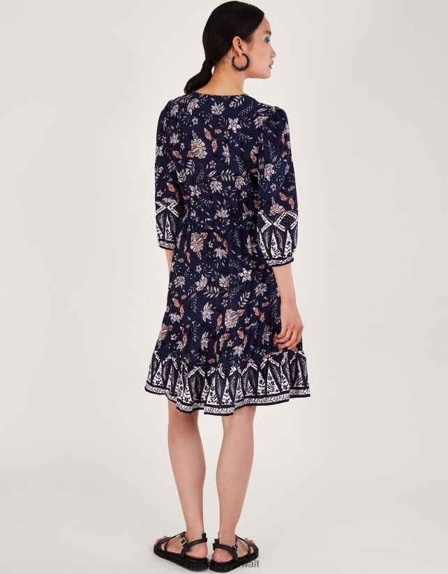 فستان الركبة الأزهار ملابس الأزرق الداكن) Monsoon نحيف N4BV8X23 - Monsoon children