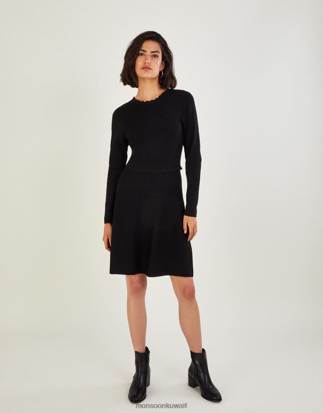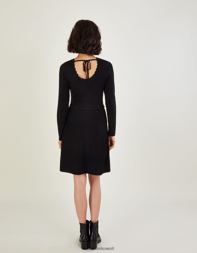 فستان برقبة على شكل صدفة وربطة خلفية من تصميم Lenzing Ecovero ملابس أسود Monsoon نحيف N4BV8X489 - Monsoon kuwait online shopping