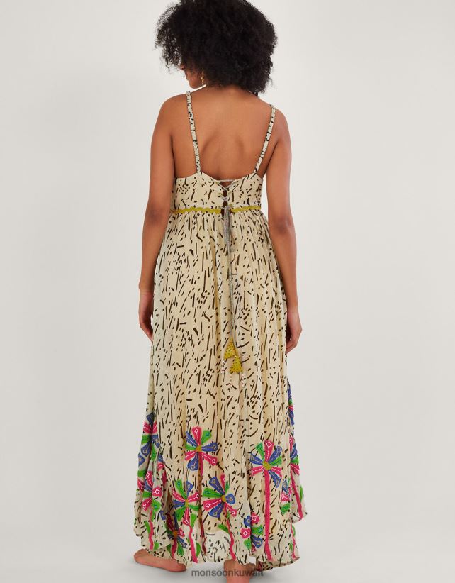 فستان بطباعة حافة المنديل مع لينزينج إيكوفيرو ملابس أصفر Monsoon نحيف N4BV8X324 - Monsoon children