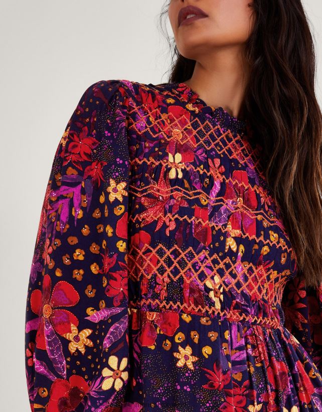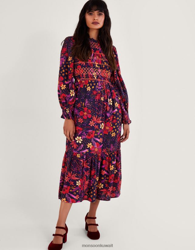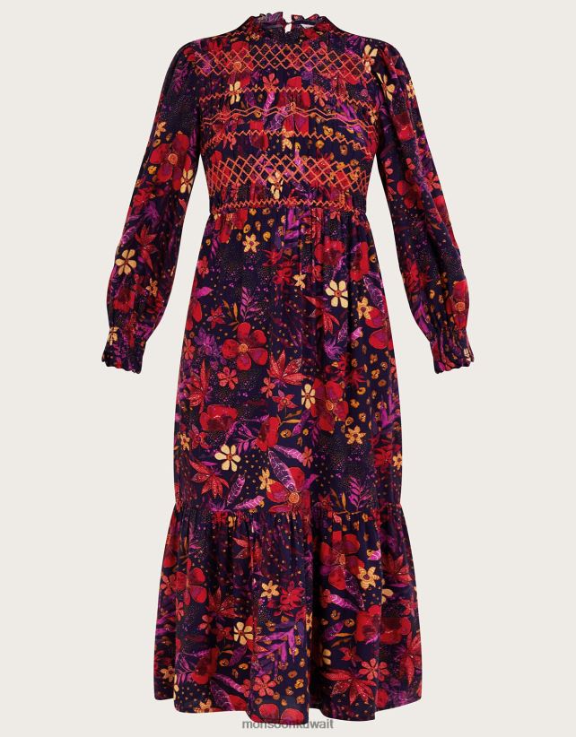 فستان سموك الأزهار ملابس الأزرق الداكن) Monsoon نحيف N4BV8X80 - Monsoon children