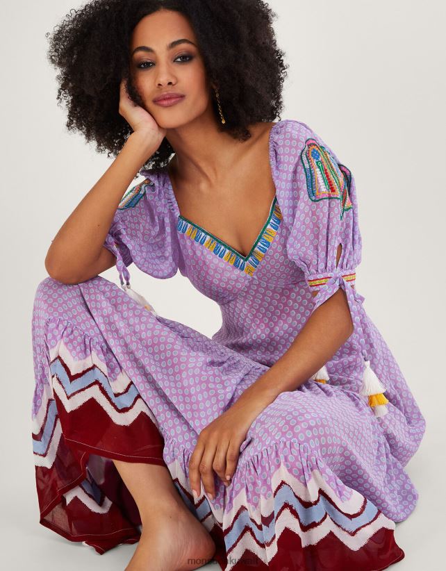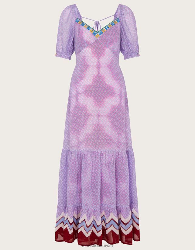 فستان ماكسي بطبعة شيفرون ملابس الأرجواني (أرجواني) Monsoon نحيف N4BV8X275 - Monsoon children