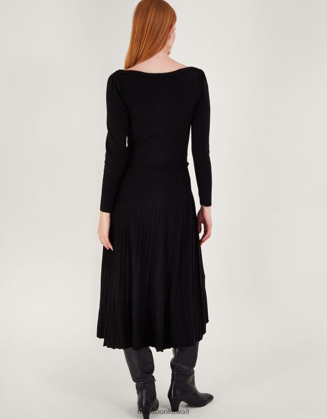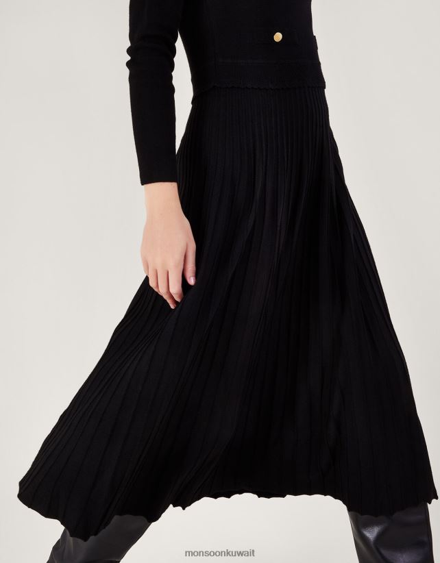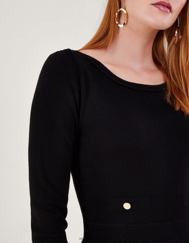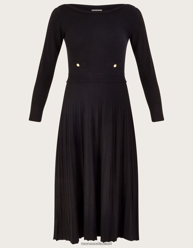 فستان متوسط الطول برقبة مائلة ومزخرف بكسرات مع لينزينج إيكوفيرو ملابس أسود Monsoon نحيف N4BV8X92 - Monsoon kuwait avenues