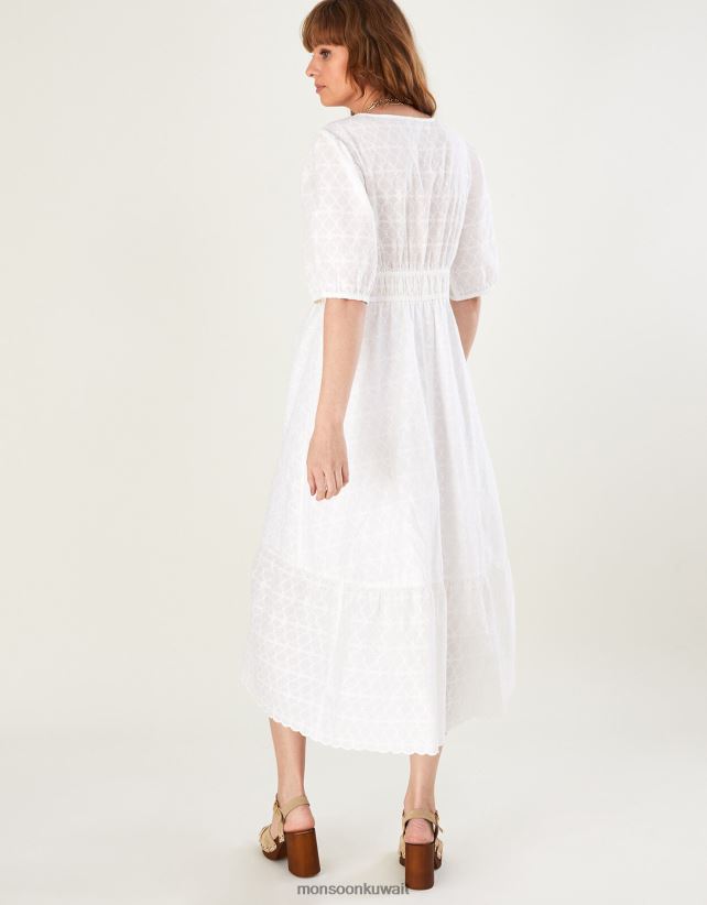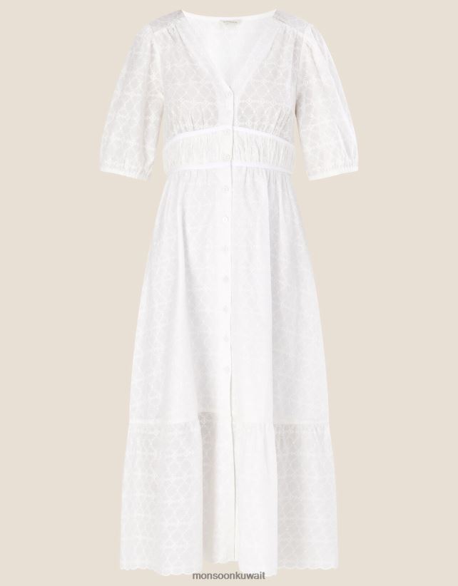 Monsoon محل - فستان دوللي ميدي من القطن المستدام ملابس أبيض Monsoon نحيف N4BV8X913