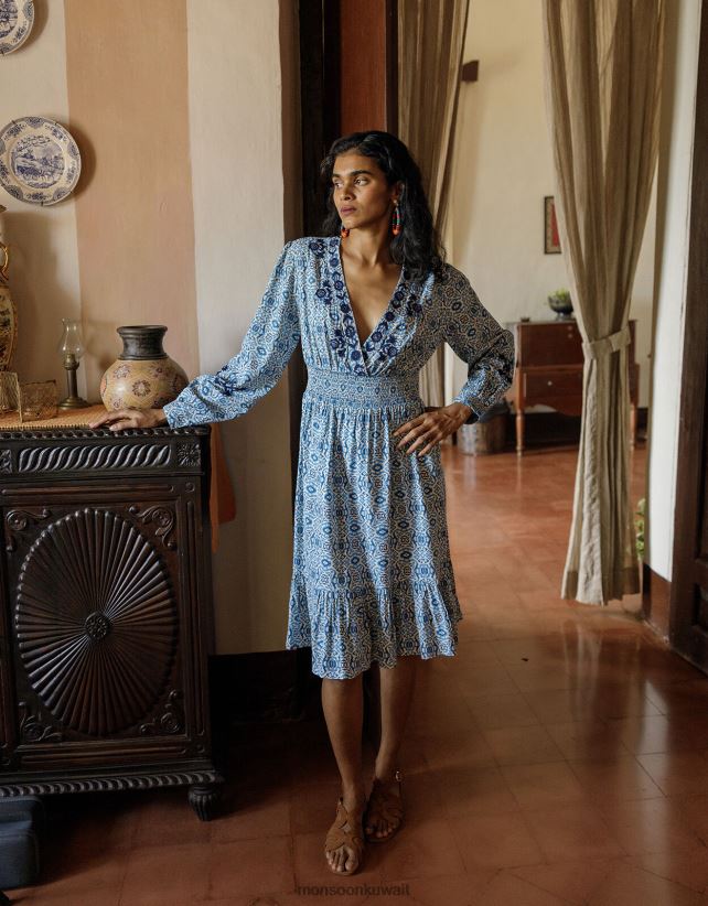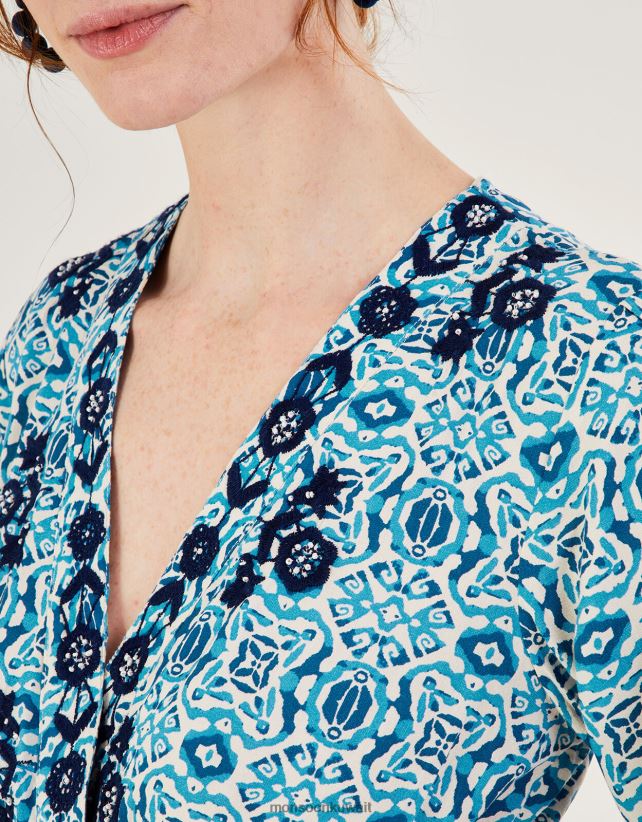 Monsoon محل - فستان فاي مطرز بطبعة هندسية في لينزينغ إيكوفيرو ملابس أزرق Monsoon نحيف N4BV8X459