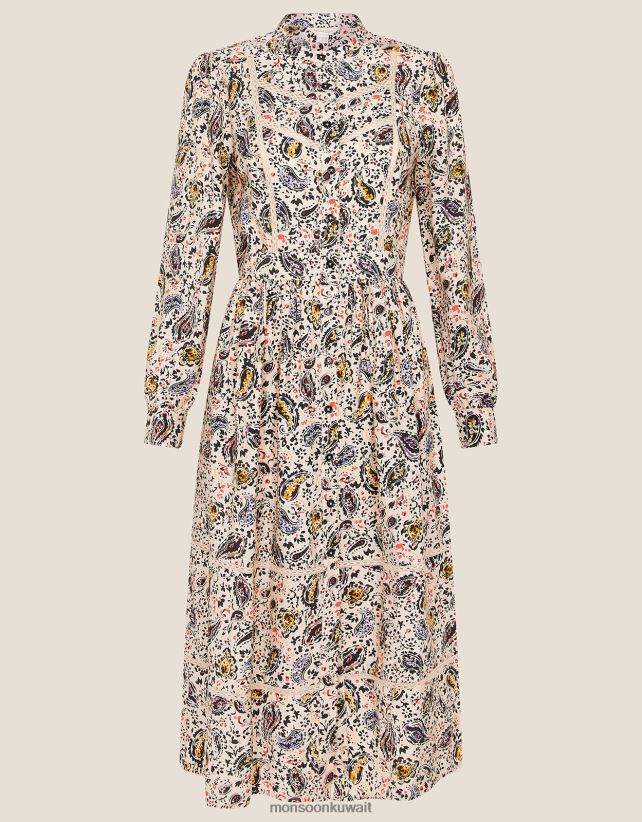 Monsoon معنى - فستان مزين بالدانتيل وطبعات بيزلي ملابس عاج Monsoon نحيف N4BV8X1114