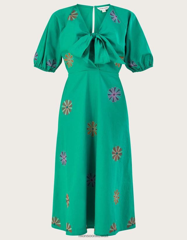 Monsoon معنى - فستان ميدي مطرز بالزهور ملابس أخضر Monsoon نحيف N4BV8X222