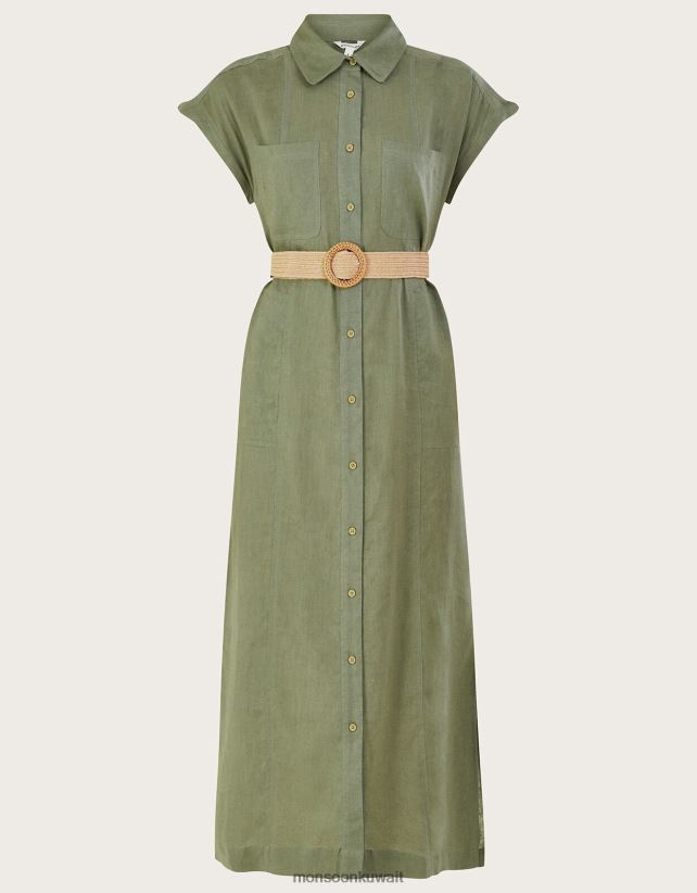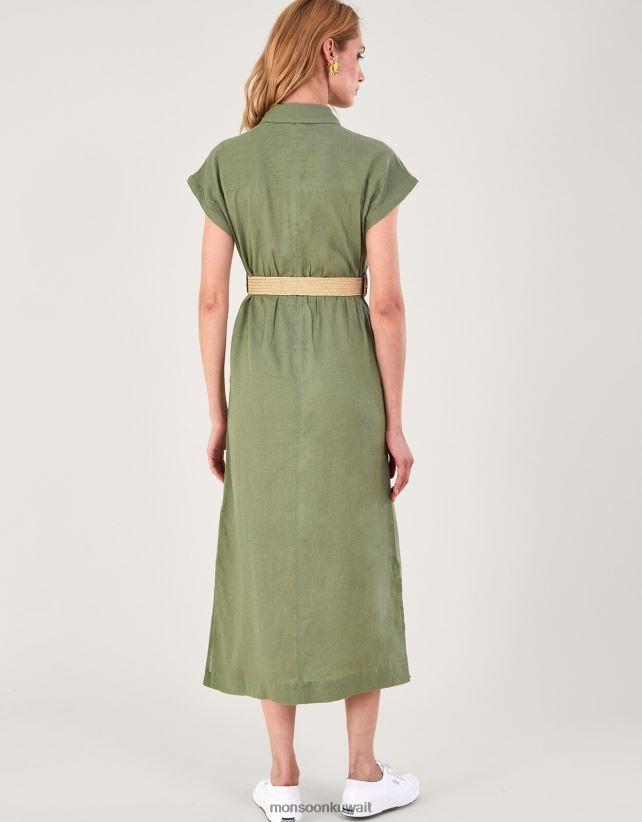 Monsoon accessorize - فستان ميدي بحزام من مزيج الكتان ملابس الأخضر (الكاكي) Monsoon نحيف N4BV8X269