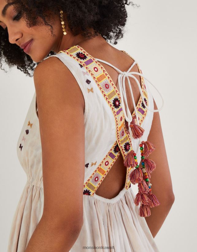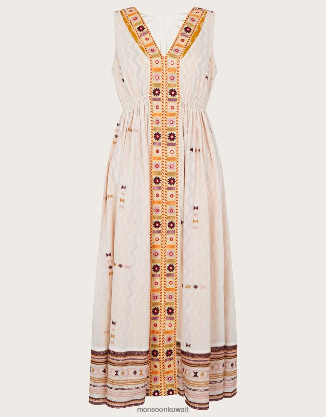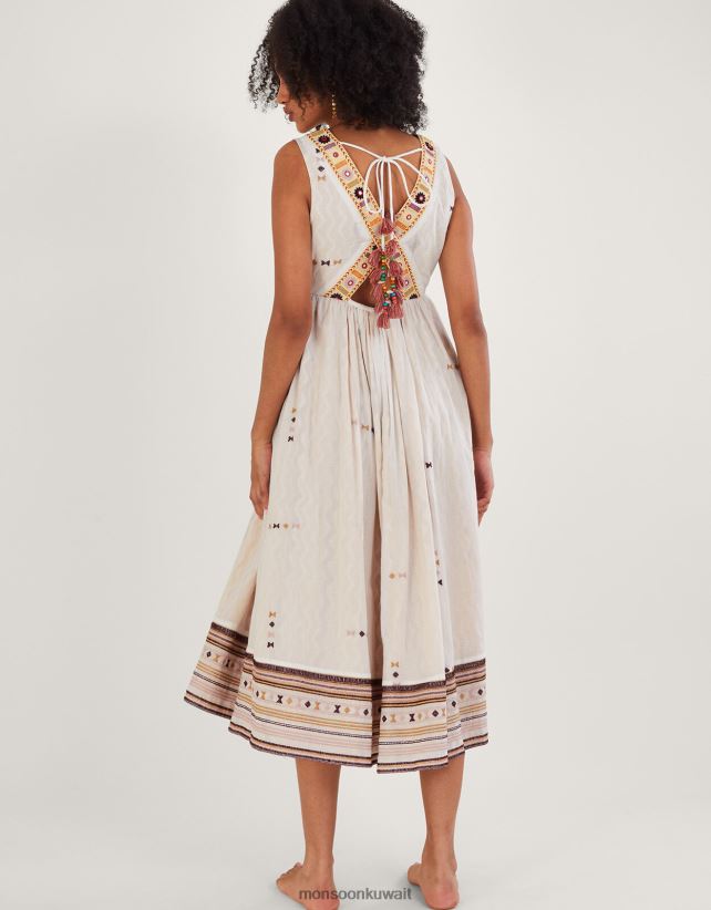 Monsoon Kuwait - فستان مطرز بتصميم شيفرون ملابس عاج Monsoon نحيف N4BV8X306