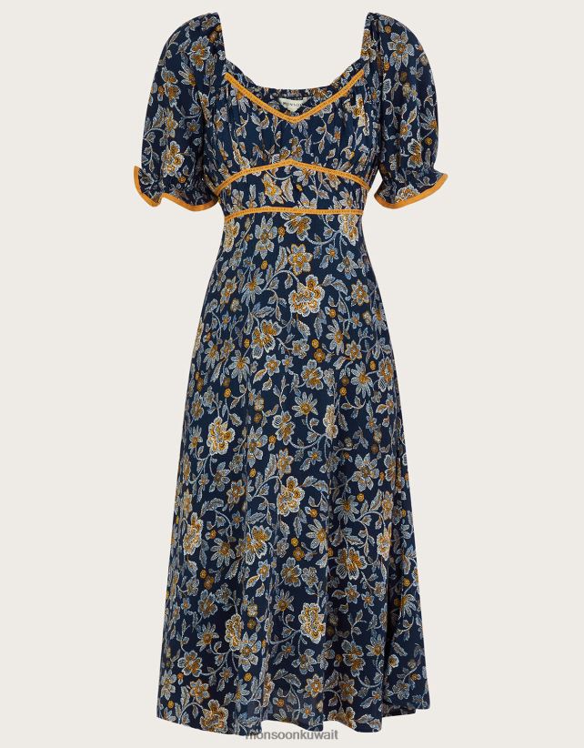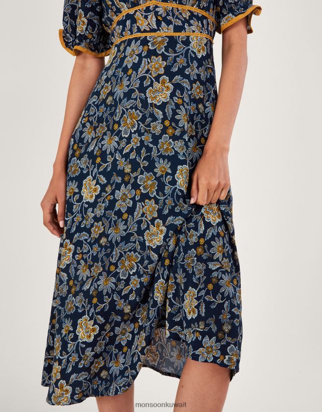 Monsoon UAE - فستان زهرة منقط ملابس الأزرق الداكن) Monsoon نحيف N4BV8X126