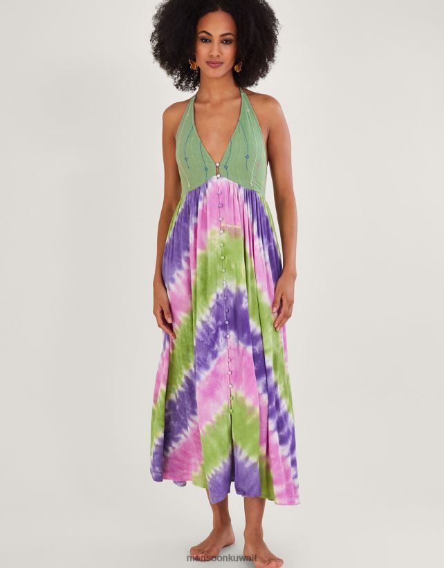 Monsoon UAE - فستان هالتر شيفرون بطباعة مصبوغة في لينزينغ إيكوفيرو ملابس لون القرنفل Monsoon نحيف N4BV8X311