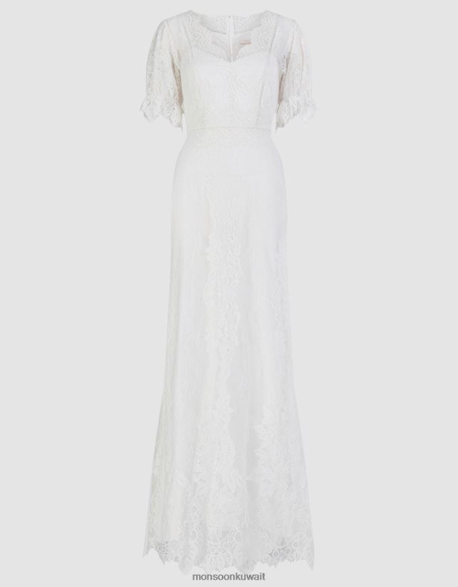 فستان زفاف طويل من الدانتيل من إليزابيث شانتيلي ملابس عاج Monsoon نحيف N4BV8X858 - Monsoon children