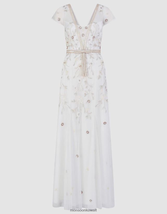 فستان ميشيل ماكسي مطرز ملابس عاج Monsoon نحيف N4BV8X620 - Monsoon online customer service