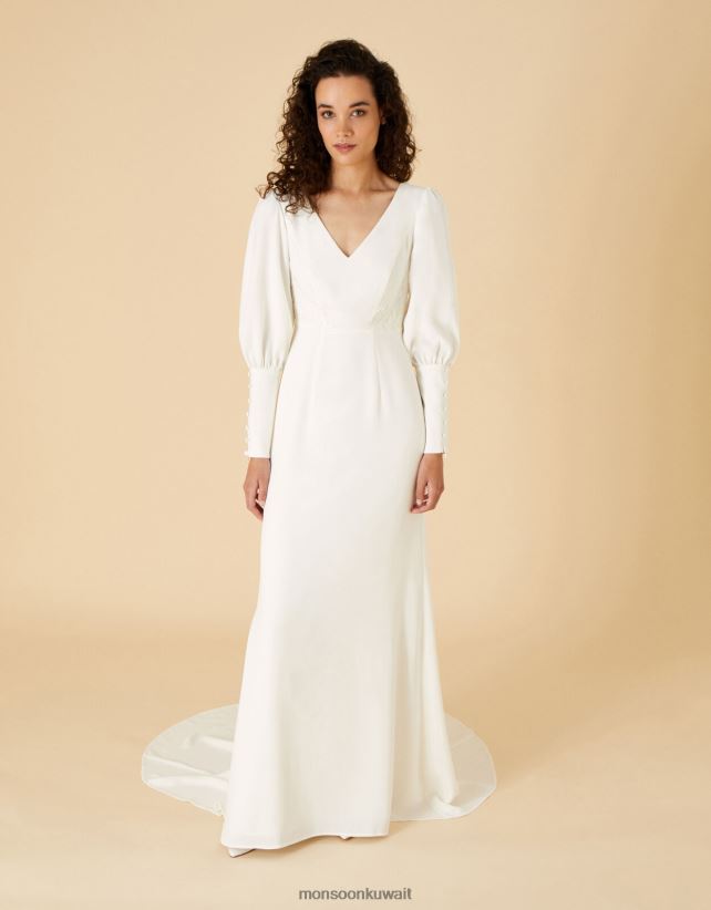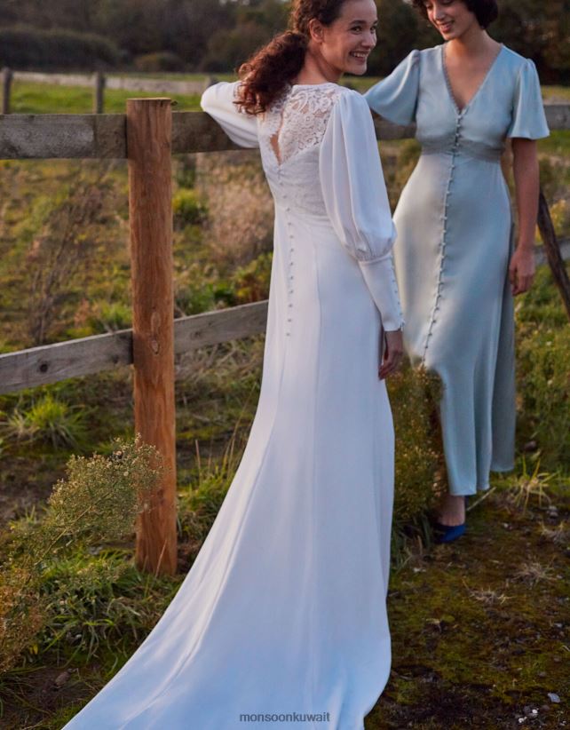 Monsoon معنى - فستان زفاف طويل بأكمام زر من بريانا ملابس عاج Monsoon نحيف N4BV8X1149