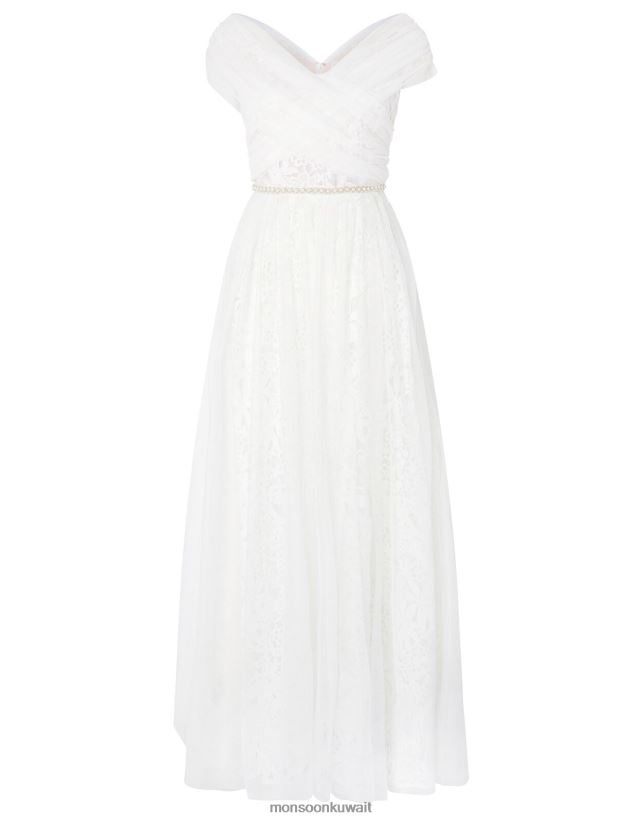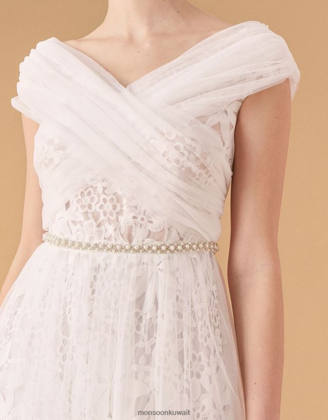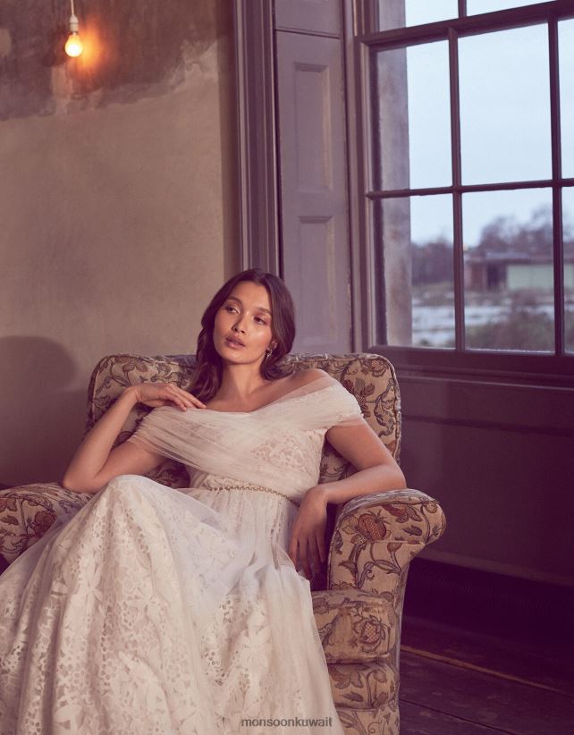 Monsoon accessorize - فستان زفاف باردو من الدانتيل والتول ملابس عاج Monsoon نحيف N4BV8X2742