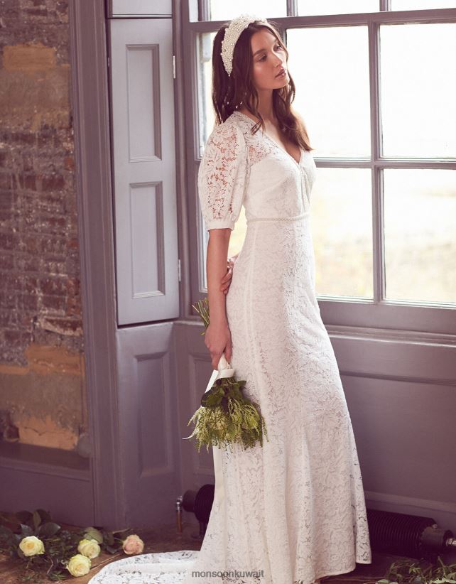 Monsoon UAE - نيكي فستان الزفاف الدانتيل مطرز ملابس عاج Monsoon نحيف N4BV8X2741