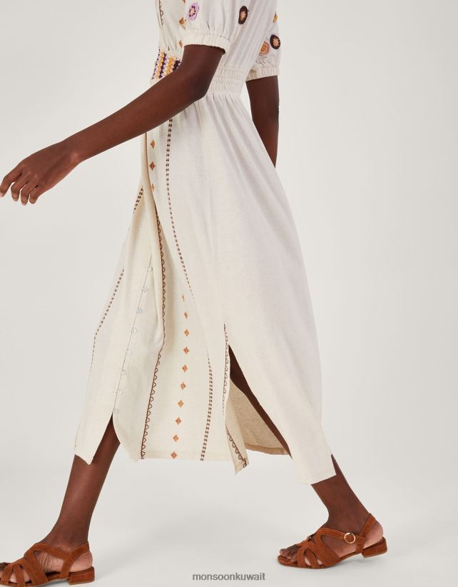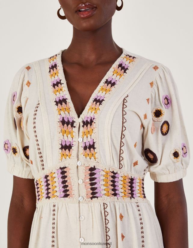 فستان ميدي بأطراف كروشيه من مزيج الكتان ملابس طبيعي Monsoon نحيف N4BV8X494 - Monsoon kuwait avenues
