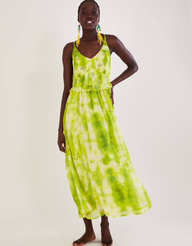 Monsoon محل - فستان من تصميم دليلة مصبوغ مع الفيسكوز المستدام ملابس أخضر (أخضر ساطع) Monsoon نحيف N4BV8X188