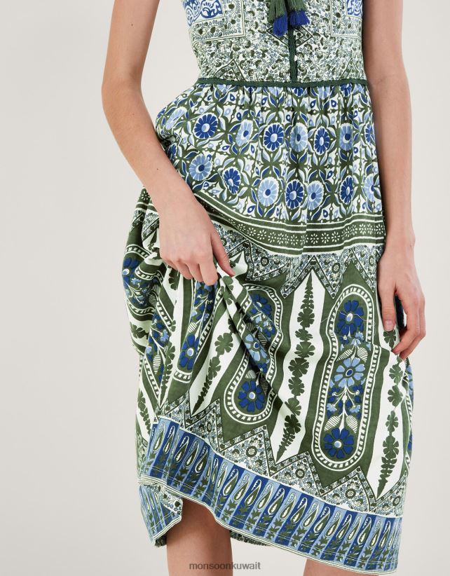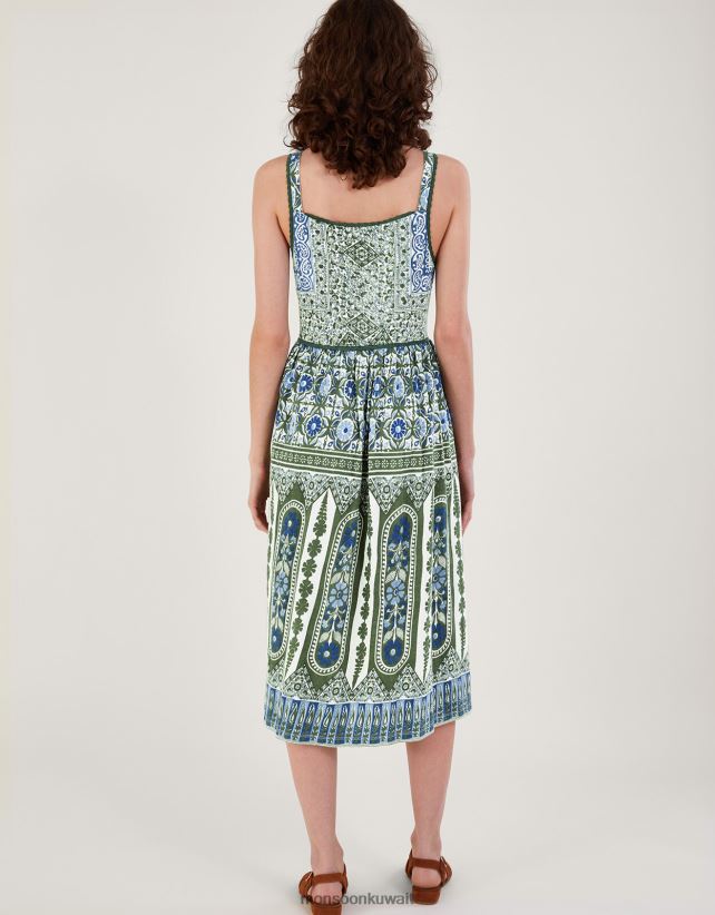 فستان بطبعات تراثية ومزخرف بالدانتيل ملابس الأخضر (الكاكي) Monsoon نحيف N4BV8X509 - Monsoon online customer service