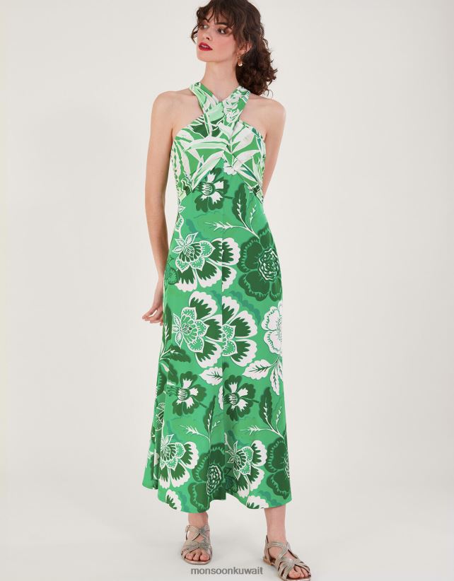 فستان ماكسي بطبعة نباتية من clo ملابس أخضر Monsoon نحيف N4BV8X183 - Monsoon online customer service